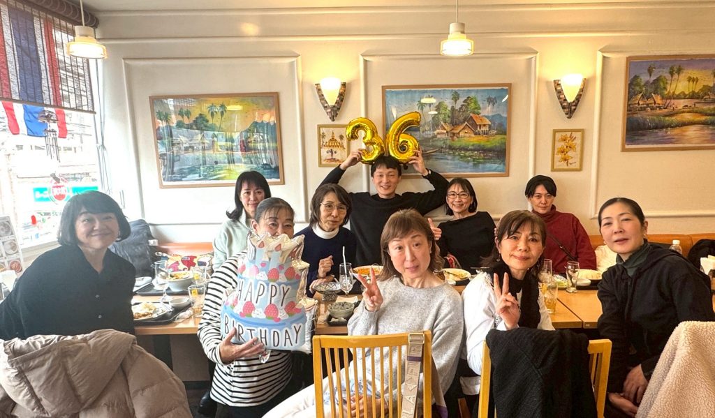 先日、木曜 森川茉央先生の誕生日ランチ会が近所のレストランにて実施されました。厳しいレッスンの時とはうって変わった楽しい和やかなひと時を生徒さん達と過ごされました。皆様も是非来年はご参加ください。